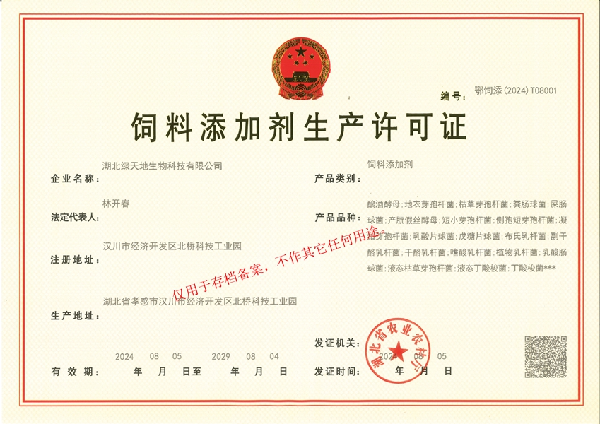 湖北綠天地生物科技有限公司 (簡(jiǎn)稱綠天地公司)投資7000萬(wàn)元,擁有25000平方米的廠房和國(guó)內(nèi)先進(jìn)的設(shè)備360臺(tái)套,建有微生物發(fā)酵、發(fā)酵冷凍干燥、低溫造粒等8個(gè)車間,發(fā)酵罐總?cè)萘?50立方米,專業(yè)的飼用級(jí)益生菌發(fā)酵生產(chǎn)基地。 公司已通過(guò)IS09001:2015質(zhì)量管理體系認(rèn)證。 綠天地公司得到了華中農(nóng)業(yè)大學(xué)、中國(guó)農(nóng)...